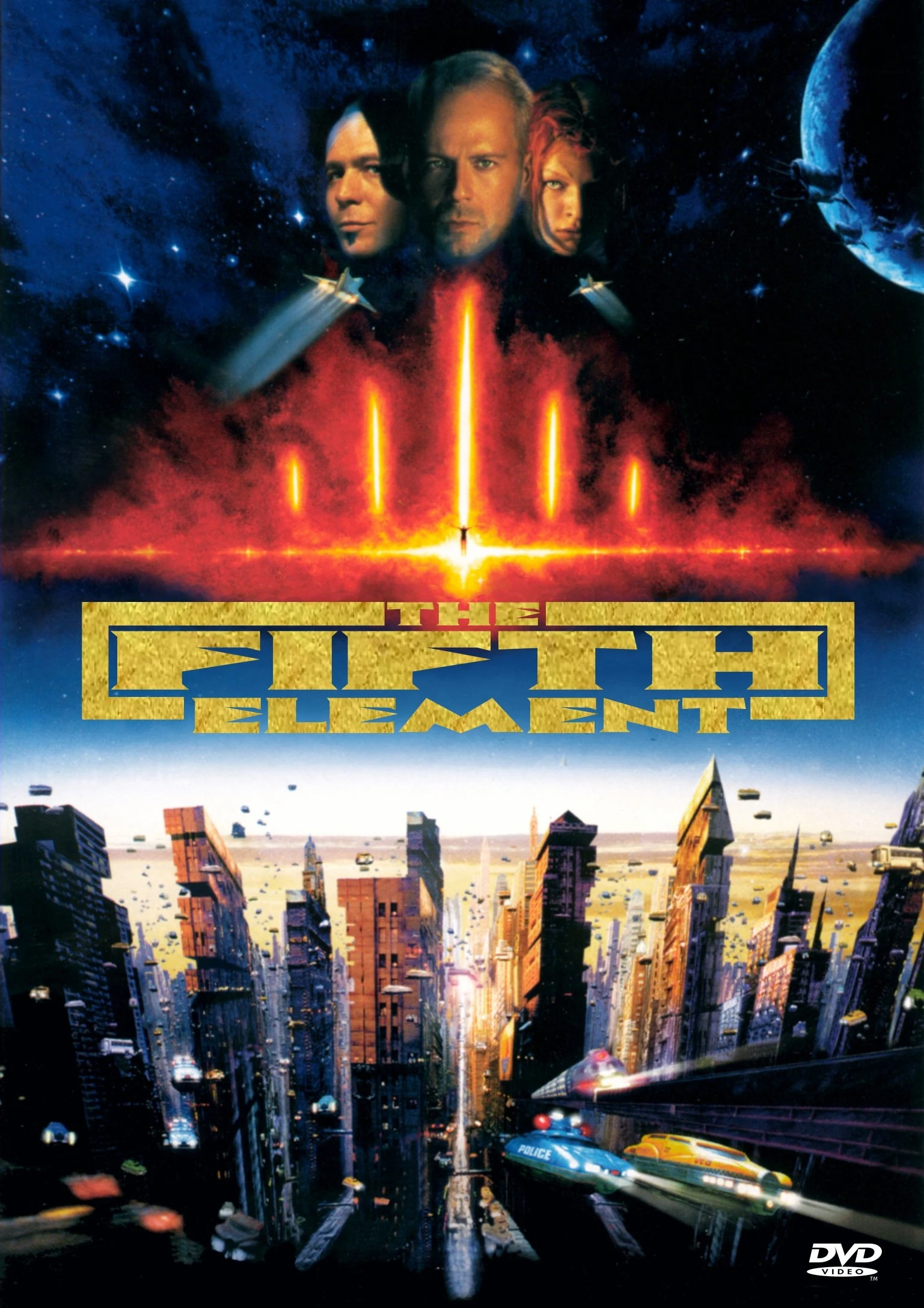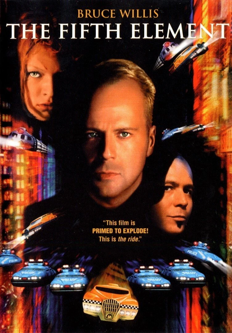 The Fifth Element, released May 9, 1997, is a French-produced sci-fi/action movie, filmed in English and directed by Luc Besson. The screenplay was co-written by Besson and Robert Mark Kamen, and was based on a story developed by Luc Besson. It stars Bruce Willis, Milla Jovovich, Ian Holm, and Gary Oldman. Mostly set in the 23rd century, the film's central plot involves the survival of planet Earth, which becomes the responsibility of Korben Dallas (Willis), a taxicab driver and former special forces major, after a Leeloo (Jovovich) falls into his cab. Dallas joins forces with her to recover four mystical stones essential for the defense of Earth against an impending attack.